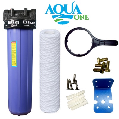 20 inch Jumbo Wound Filter Set, ideal for Whole house Water Filtration purpose and also for RO Purification plants. This filter set includes 5 micron Spun Filter Cartridge. Set includes Wrench, Powder Coated heavy duty Metal Plate, Stainless Steel Bolts, SS Screws and plugs.